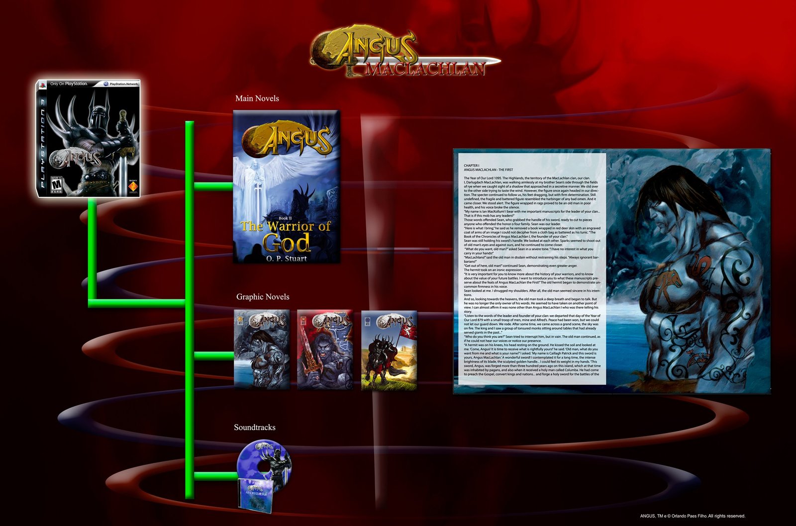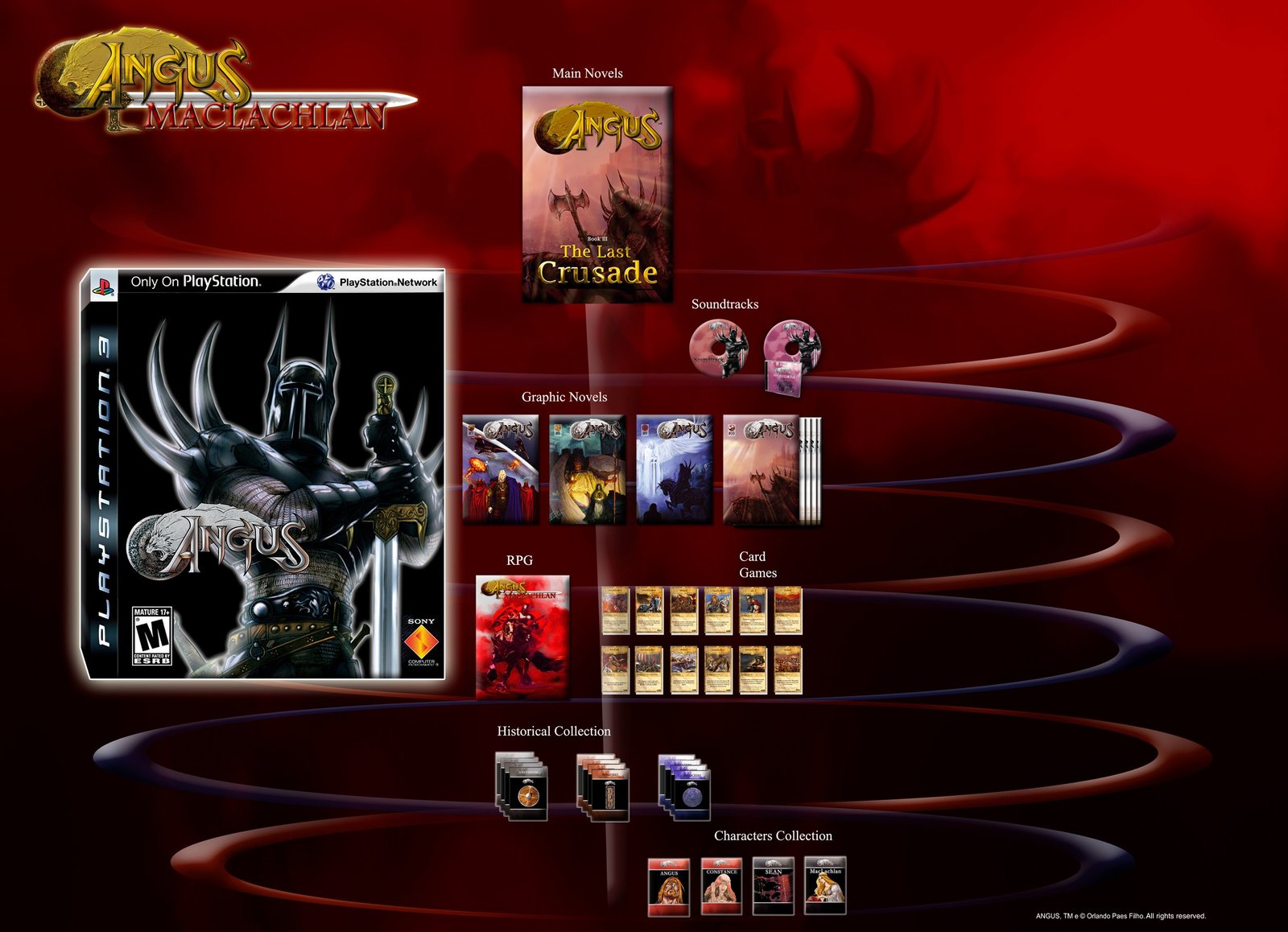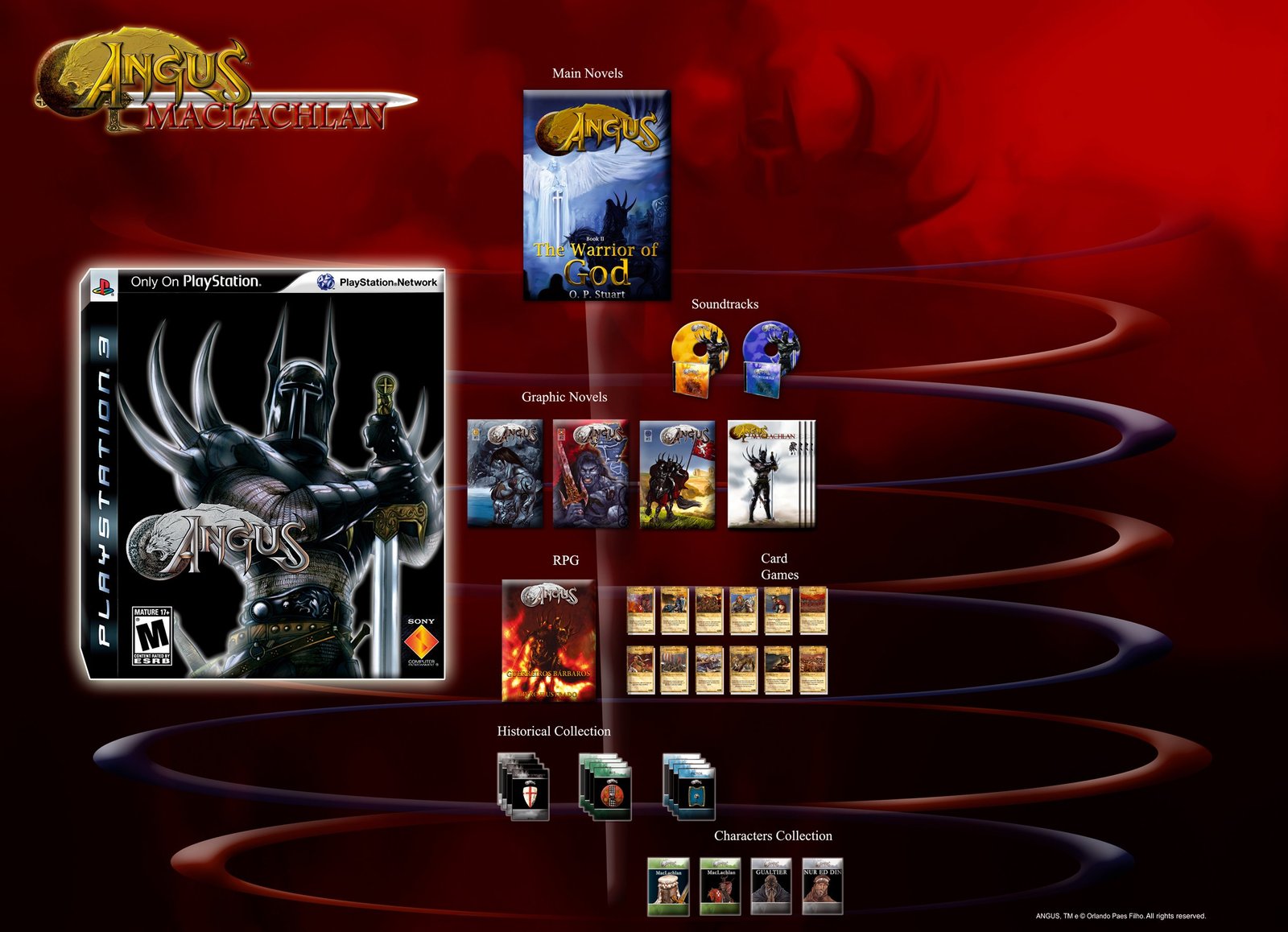 At this stage, the Main Novel Angus The Warrior of God will be released, as well as Graphic Novels, Historical Collection,Character Collection, Soundtracks, Graphic Novels, RPG, Card Games and Spin-offs.